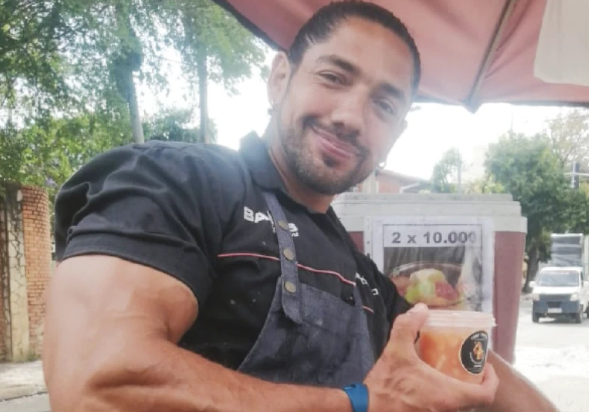 El emprendedor, Tony Fillipini (40), ha saltado a la fama por ofrecer sus productos y a la vez recibir cientos de halagos por parte de las doñas que se quedan en su puesto para comprar las ensaladas de frutas.